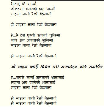 I think Umesh ji is doing a great job, and I dont think he is biased. Its true that picks on the kings but that what everyone does, every nepali wants to see him get kicked, everyone believes that he was behind the June 1 massacre. And he writes for the people. If you think Jana-aandolan was nothing, I have nothing to say. And that song was not a maoist song, it was the people, i mean general people who sang it.