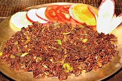 आपुइ........ क्या भान्छा यो सान्न्नानी, यामेलाइ मात्राइ तोङ्बा खाना बोलाएको हो र, सप्पै गाम्लेहारुलाइ बोलाएको हो नि, तिमी पानी आम्नु है, मो मो अनि रोटी अनि भेडाको सुकुटी खाना!