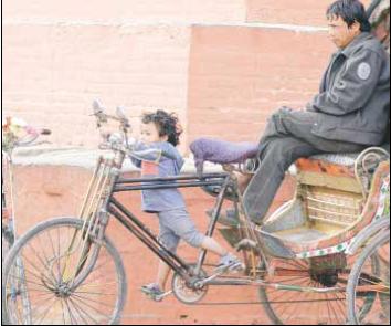 Well seems like lots of you guys thought it was true... Come on how can a children pull that big rickshaw and person. This picture was published in THT today. Is not it nice.