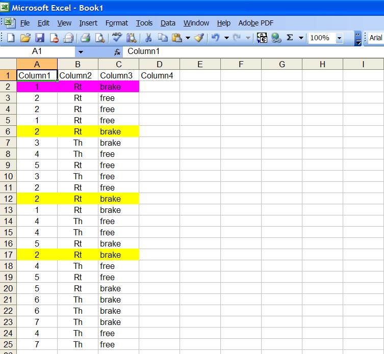 -> write "brake" in Column4 (same as copying the content from Column3)