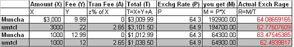 Even if others charge only 9.99 for $3000 transfer, UMTCL's actual exchange rate is still higher.