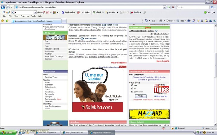 Guess what? It's not Nepalnews that's showing the indian ad. It's GOOGLE that is showing the ad. - Advertisers like sulekha pay for ad keywords on Google - Google provides website owners with small code to put on their site to show contextual ads i.e. they will show ads depending on the page content and keywords purchased by advertisers. - Google pays website owners a small portion of the payment received from advertisers A site like Nepalnews can earn a minimum of $5000 a month by placing google ad codes in their site. Nepalnews cannot determine what ad is being shown on their site at any given point. They can specify which ads to not show. I suppose they can chose to not show sulekha but why would they care?