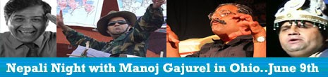 Nepali Nite with Manoj Gajurel and local artists from Ohio. Manoj Gaurej is a popular comedian from Nepal and is in US tour. He has already toured Korea, and Hong Kong with successfully. Venue: University of Akron, OHTicket: $10.00/person visit www.napausa.org for online ticket and detials of the program. More details including videos at www.nepalisite.com and http://www.nepaltube.com/search_result.php?search_id=manoj&search_typ=search_videos&x=49&y=13