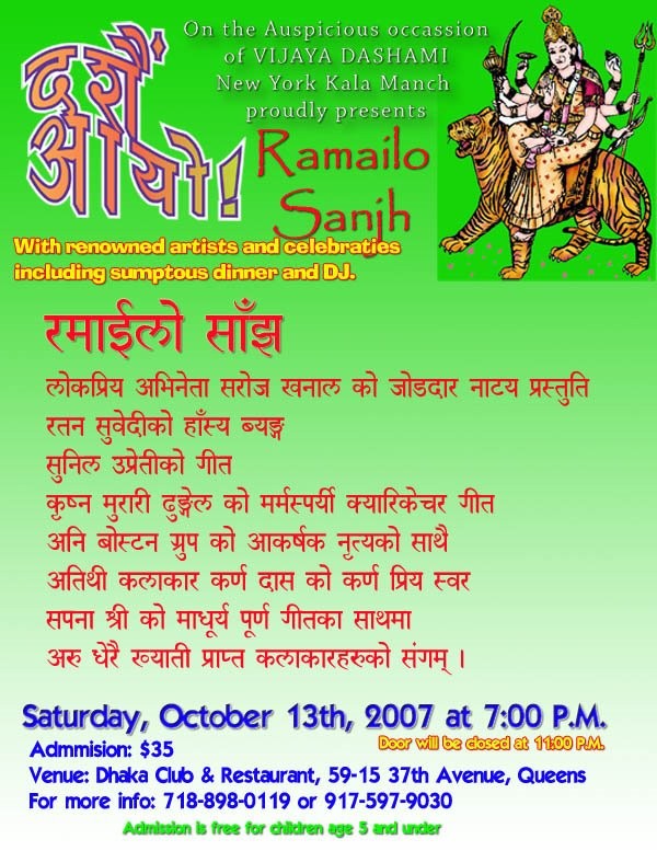 On the very auspicious occasion of VIJAYA DASHAMI, New York Kala Manch proudly presents, RAMAILO SANJH.