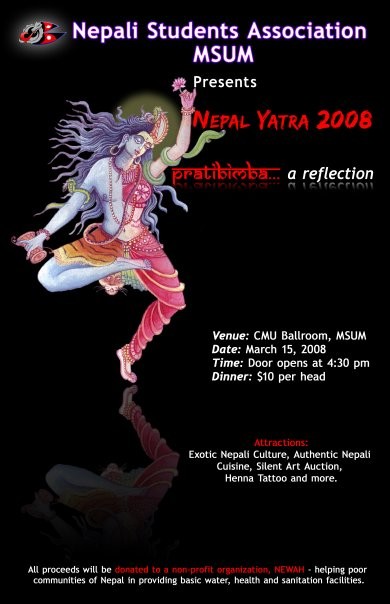 Nepalese Student Association(NSA) is organizing Nepali Nite 2008. On behalf of NSA, I would like to invite all the Nepalese people for Nepali Nite 2008.