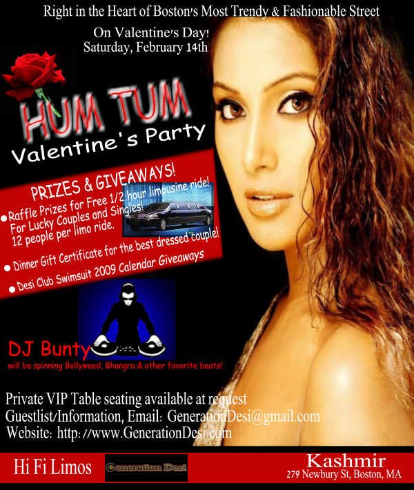 Boston's No. 1 Stop for Desi Entertainment -GenerationDesi.com brings you HUM TUM Valentines Party on February 14th, Saturday.