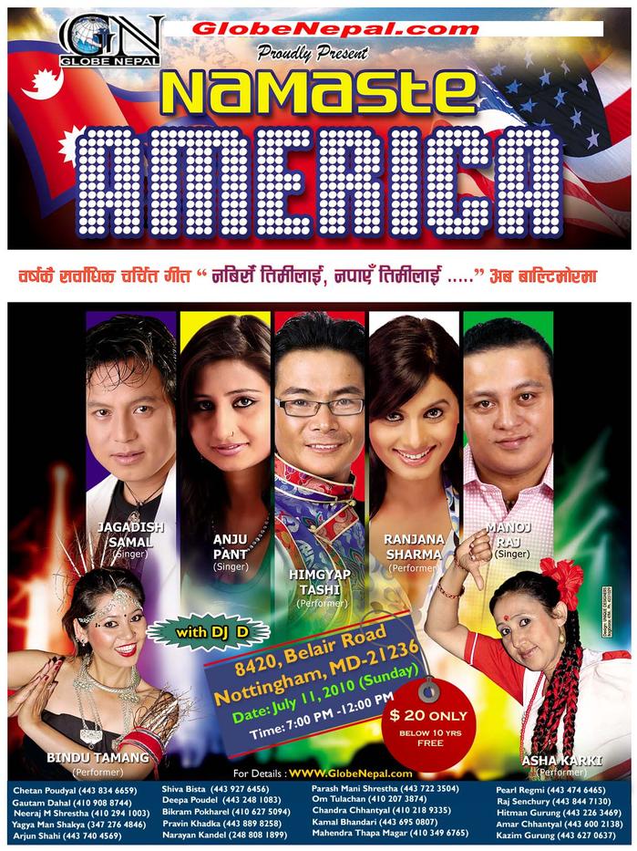 वर्षकै सर्वाधिक चर्चित गीत “नबिर्सें तिमीलाई, नपाएँ तिमीलाई..” अब बाल्टिमोरमा “नमस्ते अमेरिका- सांगीतिक साँझ” जुलाई ११,२०१० आइतवार 07/11/2010