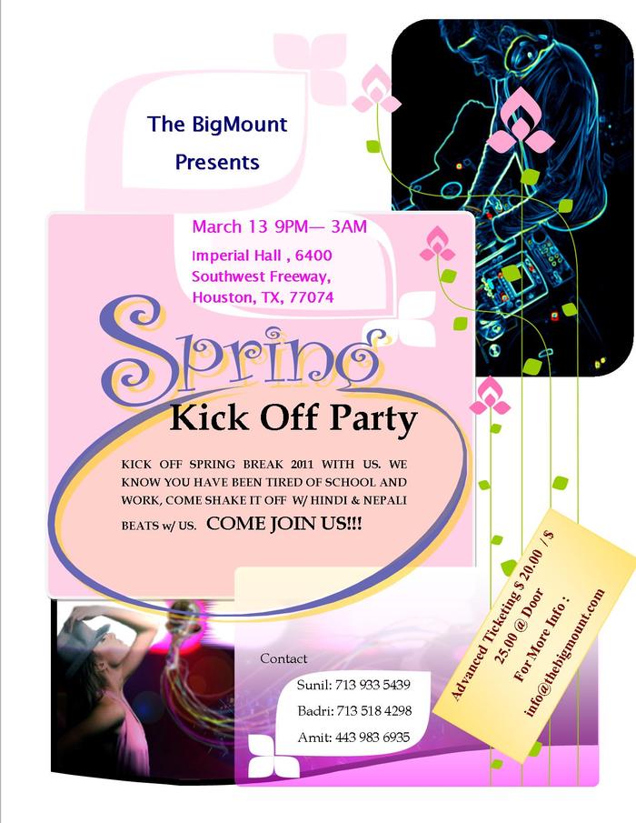 The Big Mount is presenting the first ever Spring Break kick off party & DJ Night. Fun all night long. w/ Complimentary Indian Buffet along with purchase of ticket.