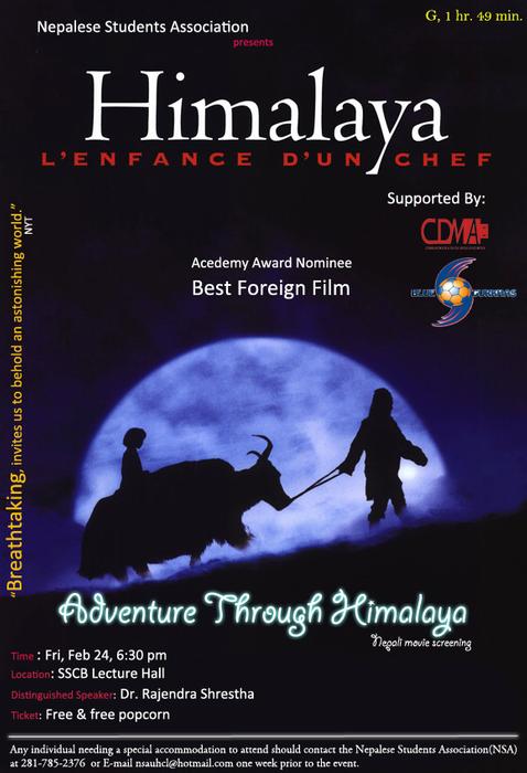 Nepalese Students Association is screening the movie "Caravan" or Himalaya on 24th Feb 2012 at University of Houston Clear Lake. The ticket is free and we will have free popcorn and drink. Spread the words and help make this event successful.