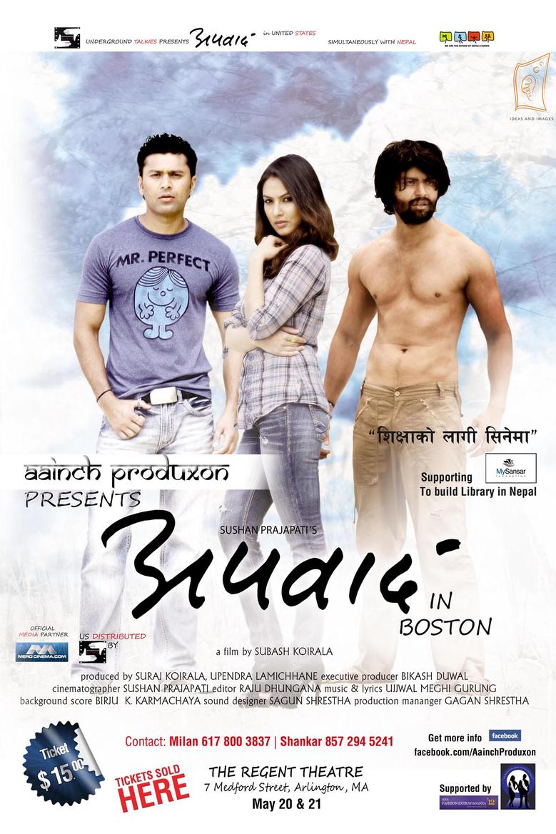 'APABAD' MOST AWAITED NEPALI MOVIE IS RELEASING IN BOSTON (ON MAY 20 730PM AND MAY 21 830PM) ALONG WITH NEPAL.MOVIE IS PRESENTED BY AAINCH PRODUXON BOSTON. THIS IS A CHARITY SHOW TO BUILD LIBRARY IN NEPAL THROUGH MYSANSAR FOUNDATION.contact 6178003837 for more info.