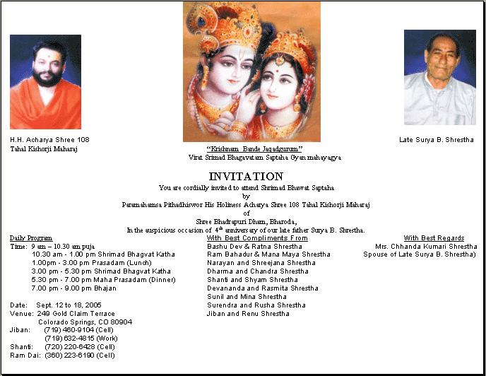 Shrimad Bhagavatam Saptaha Gyan Mahayagya - Sept 12 to 18th, Colorado Springs, CO