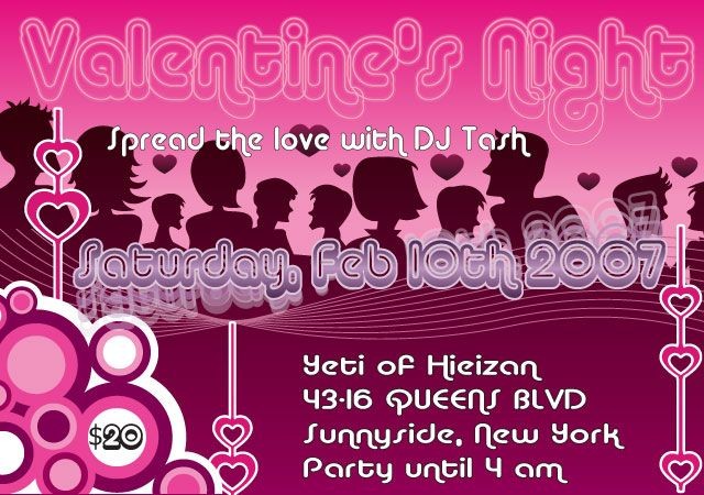 MUSIC EXCLUSIVELY BY: Dj TASH (DEBUT) SAVE THE DATE …..VALENTINE’S NIGHT PARTY FEB10th THIS PARTY IS EXCLUSIVELY FOR COOL, HIP AND SEXY PPL WHO LIKE GOOD MUSIC, LOVE TO DANCE OR JUST WANNA HAVE FUN, THIS IS THE PARTY YOU HAVE BEEN WAITING FOR. “I’M BRINGING SEXY BACK AND THIS TIME IT’S HERE TO STAY. SO DON’T FORGET TO PUT ON YOUR DANCING SHOES, AIGHTâ€. …DJ TASH VENUE: YETI OF HIEIZAN 43-16 QUEENS BLVD. SUNNYSIDE, NY 11104 (2 STREETS DOWN FROM SIDETRACK) MUSIC EXCLUSIVELY BY: Dj TASH (DEBUT) Directions by Train: YETI OF HIEIZAN Take the 7 train heading towards Queens / Flushing Get off at 40 Street (Lowery Street) Walk toward 43rd street. (It's located 2 streets down from SIDETRACK)