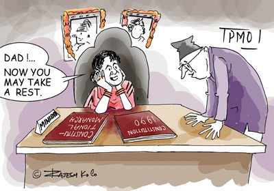 Well, the problem as I see it as, even though the 8 parties are supposedly "democratic", they do not practice "democracy" within their organizations. I do not know about either the Indian case (read Nehru/Gandhi) or the Pakistani case (read Bhutto), but in the US (for those of you following the primaries) however much you disagree with the policies and governance of Bush, he was democratically elected. Bush had to go thorugh a gruelling primary (or caucus) in each of the fifty-two states before he could even contest the elections. We do not have anything of that nature in any of our parties be it NC, UML or the Maoists. Why are the Koiralas, Nepals or Dahals even leaders of those parties? They never in their life had to contest a fair election within their organization to get a party ticket (nomination) to contest elections. If one were to think of holding something similar to a primary within the NC, I bet Sujata would have lost it (or maybe have won it) but at any event, she would have more legitimacy than she has now. Qualifications aside, to be a legitimate leader, you need the permission (or at least a semblance of) the people who are being led. Isn't that the essence of democracy? At least the way I understand it.