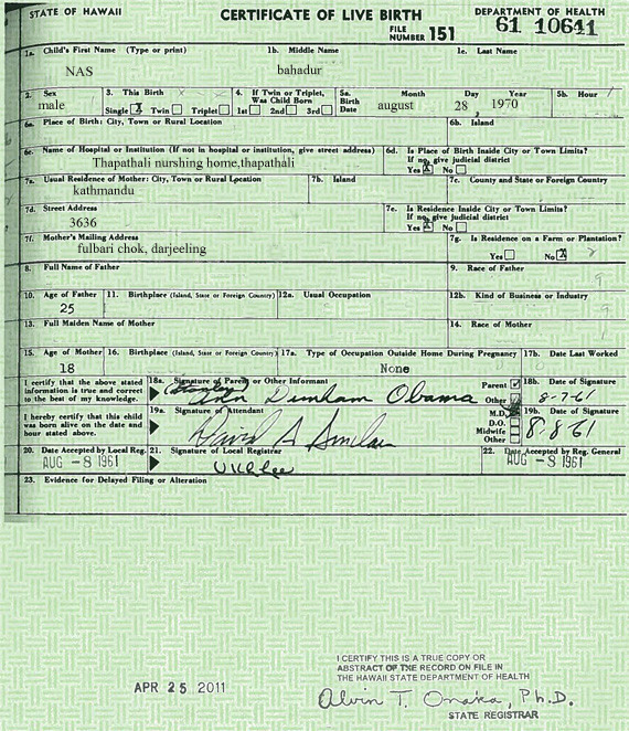 Give all of us a break NAS. Its not about birth certificate it is about his color. You are quoting examiner, you should feel ashamed of yourself.